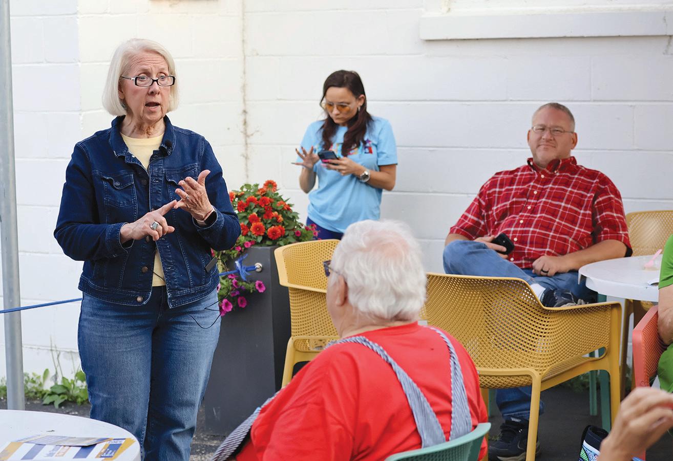Iowa Democratic candidate for governor Julie Stauch hosted a conversation with about 20 Winneshiek County residents the afternoon of Friday, July 1 at The Landing in Decorah. The 68-year-old announced her campaign on June 3, and she told Friday’s audience her campaign strategy is unconventional.