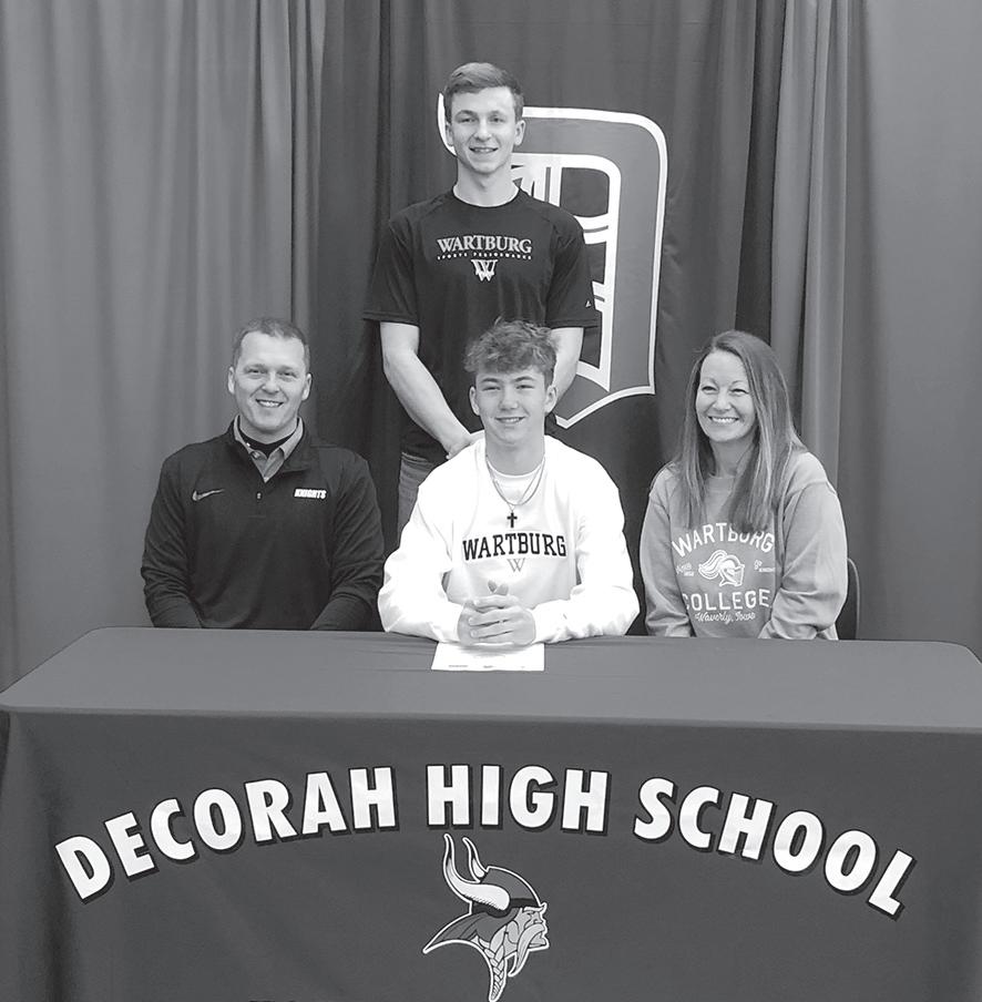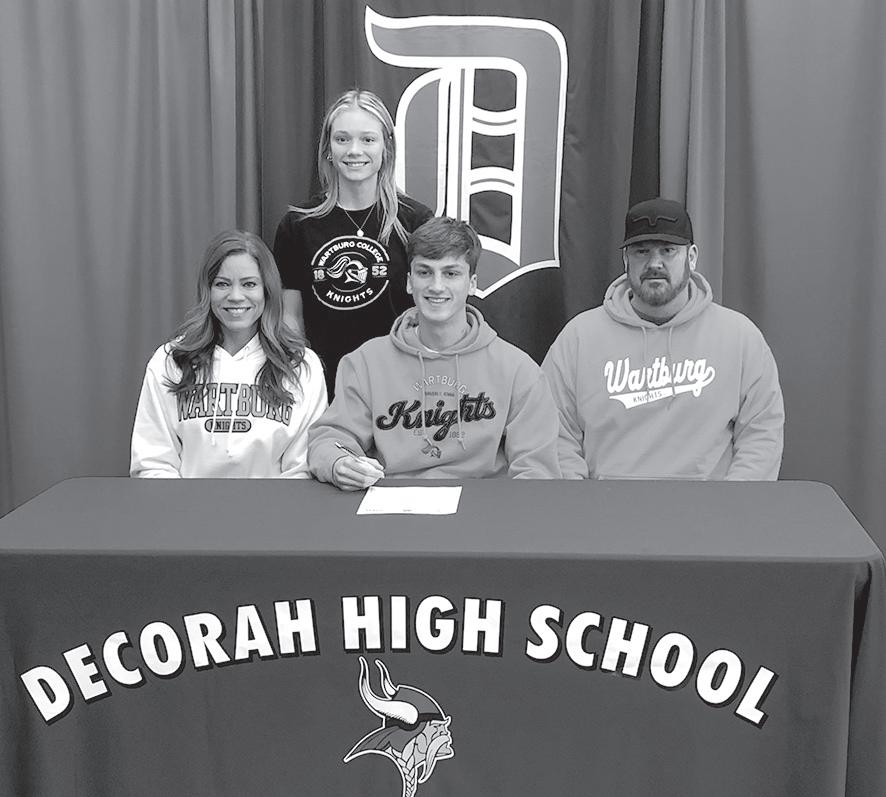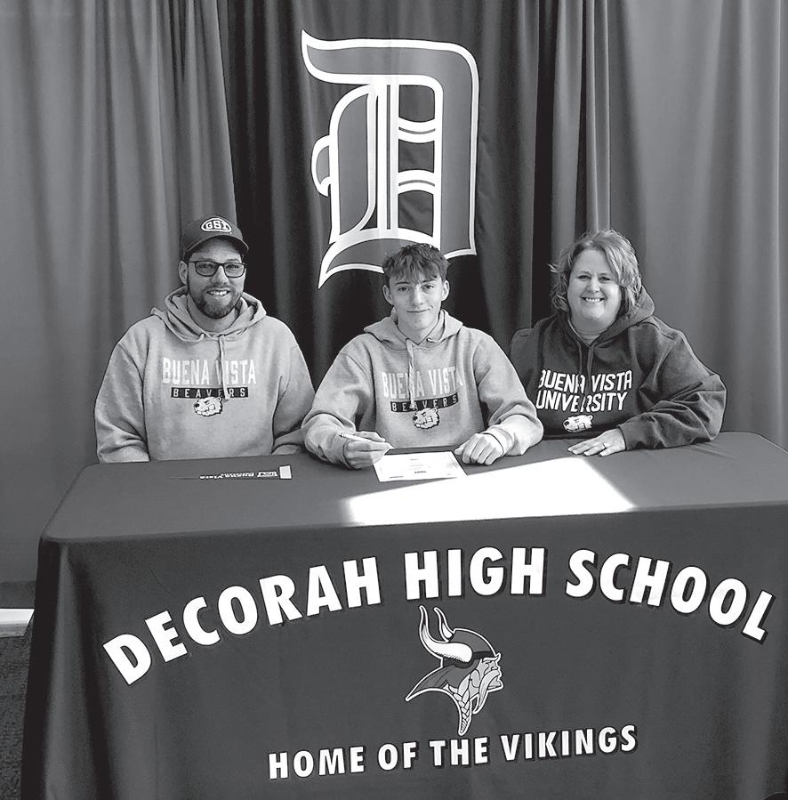 Last week Decorah senior Brady Benzing signed an American Rivers Conference letter of intent to participate in soccer at Wartburg College. Benzing has been a two-year letterwinner for the boys soccer while helping the Vikings amass 31 wins in his three years in the program including sub-state final appearances in 2022 and 2023. Benzing is the son of Mitch and Heather Benzing and also participates in football.