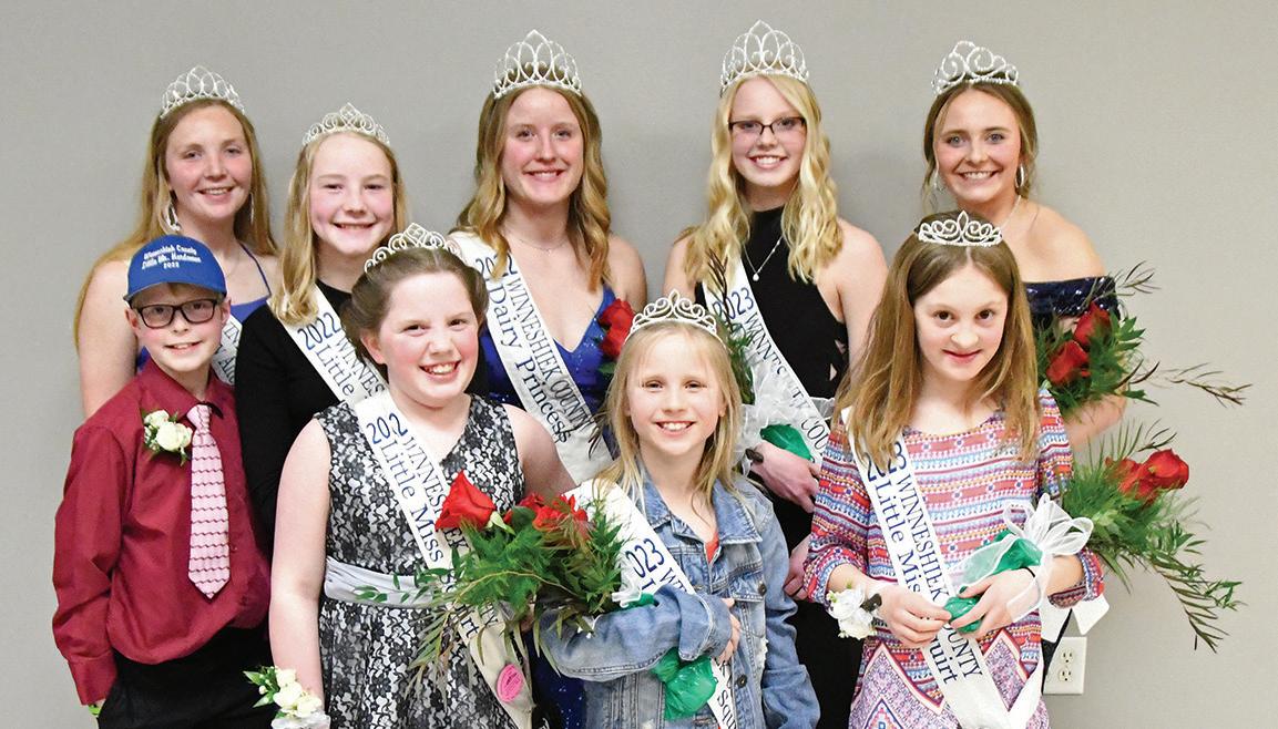 The crowns were passed on to the 2023 Winneshiek County Dairy royalty at the 60th annual Dairy Banquet in Festina Saturday night. The 2022 and 2023 royalty are pictured together following the coronation including front (l-r): 2022 Little Mr. Herdsman