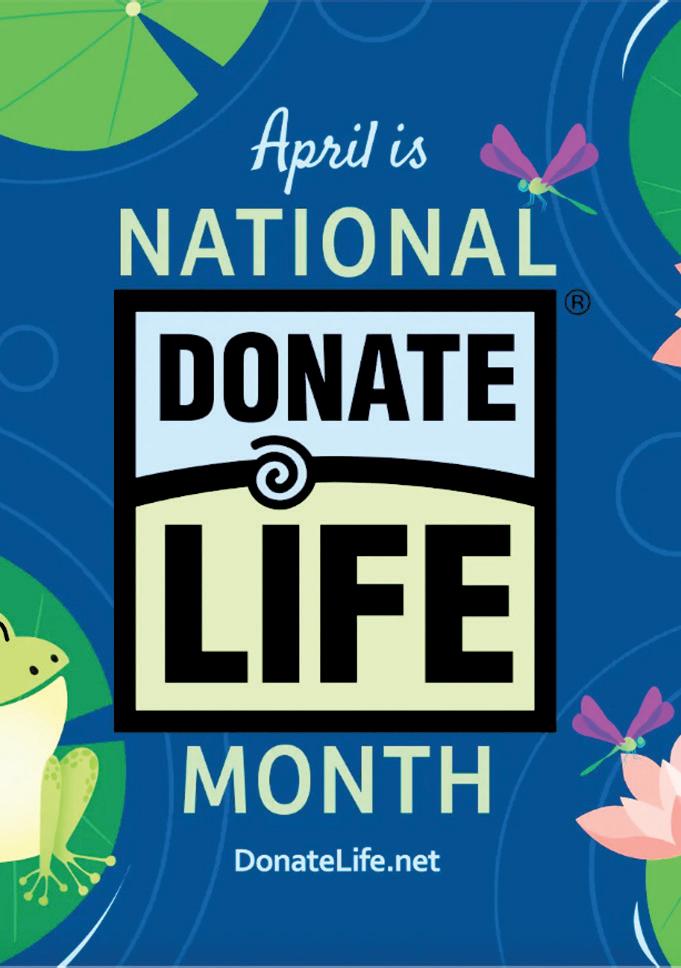 April is Donate Life Month and serves as a reminder to the public to register to be an organ and tissue donor. According to the Iowa Donor Network, organ and tissue donation is a gift that saves and heals hundreds of thousands of lives each year. For transplant recipients and patients on the transplant waiting list, the gift of donation offers a second chance at life; a chance to move forward and fulfill the legacy left behind by the gracious donor.