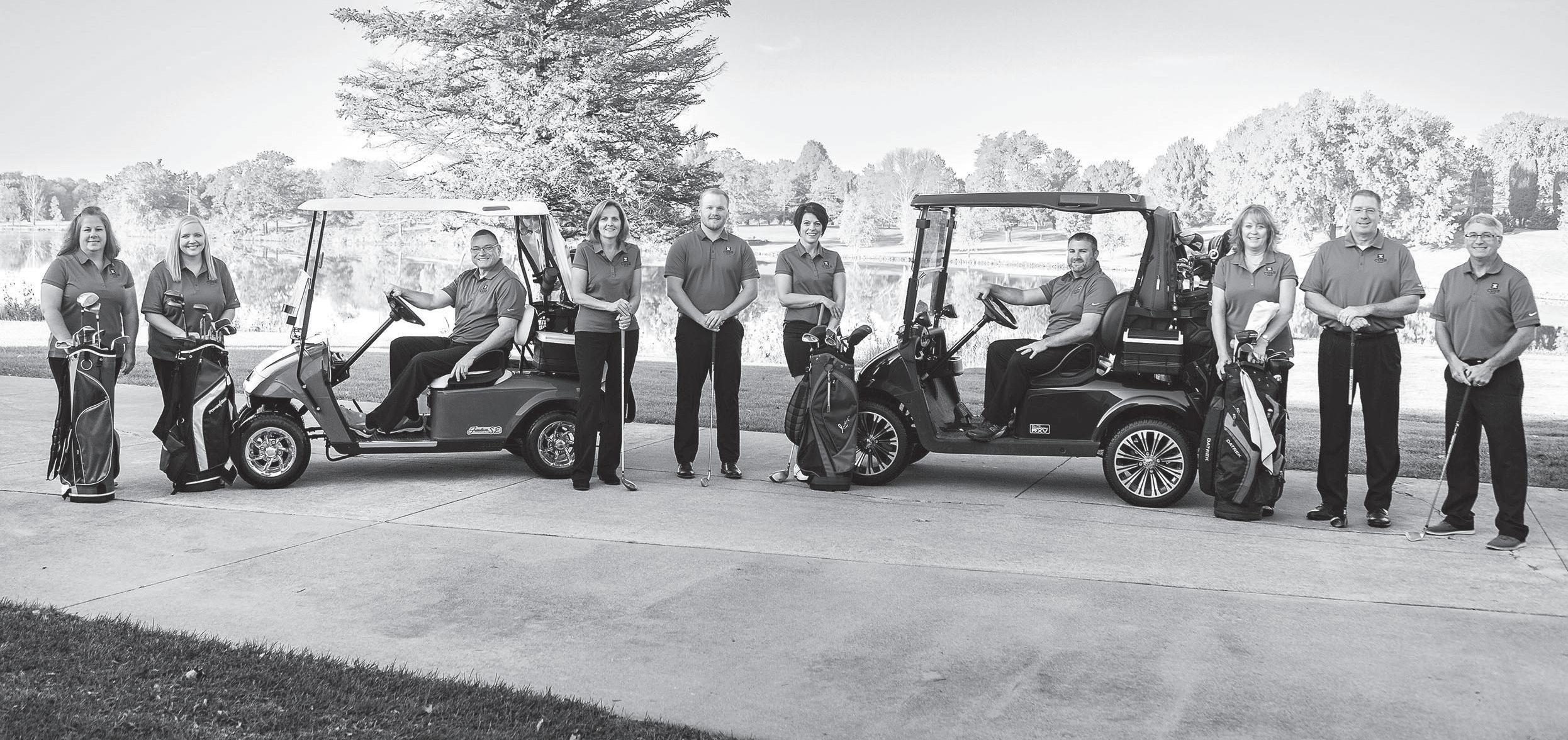 ABOVE: Members of the Turkey Valley boys’ golf team this season are (front, l-r) Wyatt Maklenburg, Parker Reicks, Logan Busta, JD Kruse, Calen Franzen, Caleb Kurtenbach; (back) Carson Busta, Garrett Dietzenbach, Bode Balk, Noah Hanson, Calvin Bodensteiner, Braylen Byrne. RIGHT: Returning letter winners set to lead the Trojan boys’ golf team in 2023 are (l-r) Caleb Kurtenbach, Braylen Byrne, Calvin Bodensteiner and Oliver Schmitt. (Driftless Multimedia photos by Becky Walz)