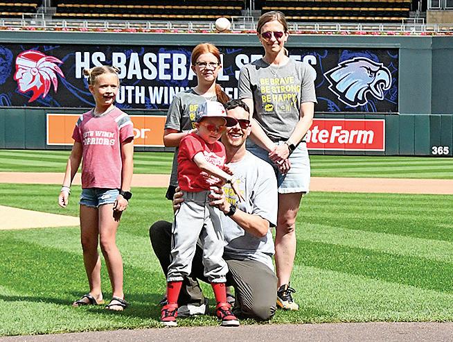 as he was honored to throw out the first pitch Thursday on Target Field for the game between Kee and South Winn. (Driftless Multimedia photos by Becky