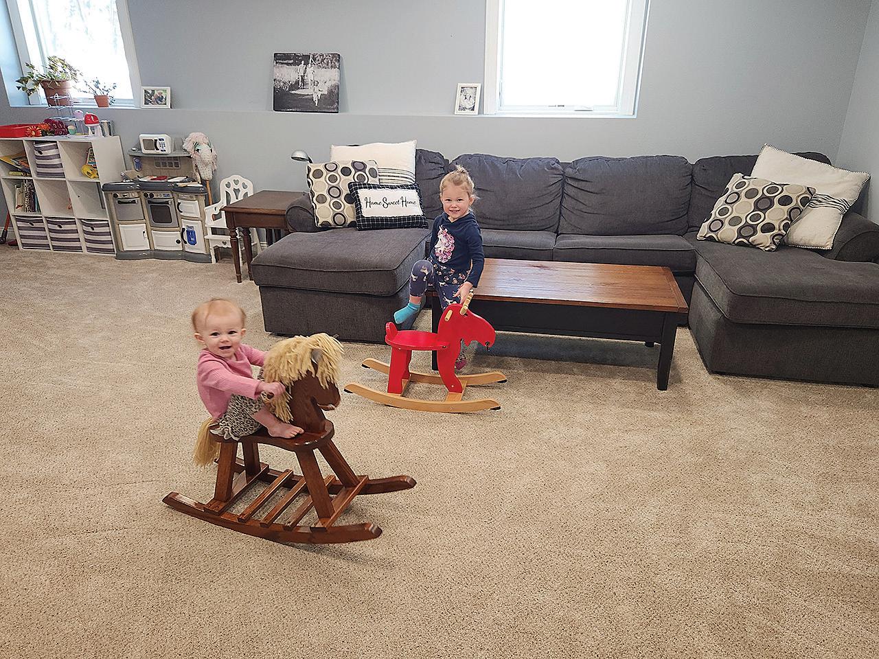 The home’s expanded basement boasts a large playroom for the children, a half-bath and an office for Adam.