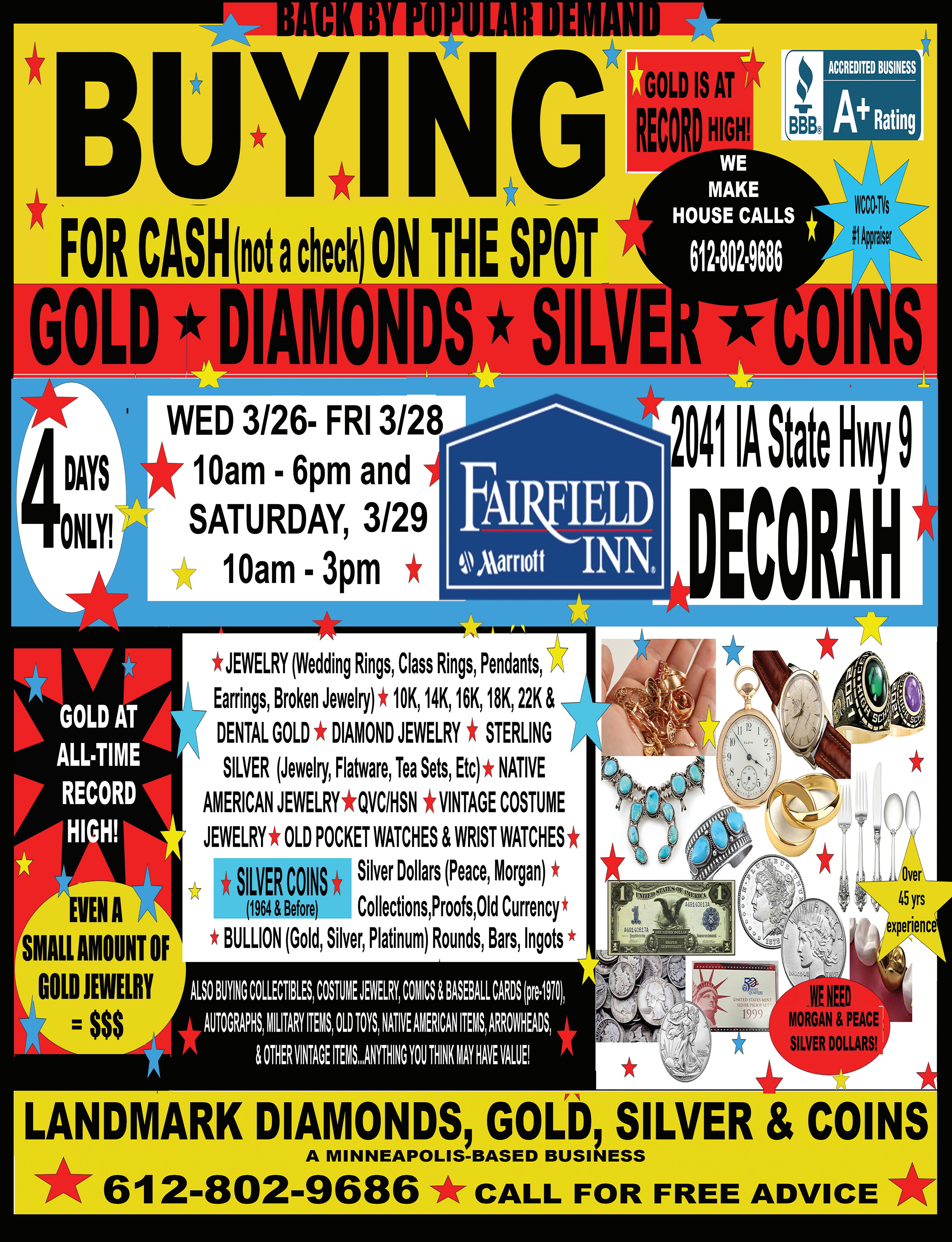 SUNDAY, APRIL 6 - 10 a.m. Large Coin Auction. Community Center, Protivin, Iowa. Shindelar Auction Service, LLC. Protivin, Ia 563-569-8235. www.auctionsgo. com