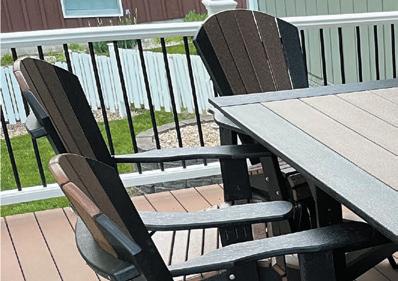 LEFT- The Quandahl home features an open concept design on its first floor, with additional space for entertaining guests on its lower level. RIGHT- A pair of rocking Adirondack chairs rest on the front porch of the Quadahl family’s home, offering scenic views from the rural hilltop. (Photos by Seth Boyes)