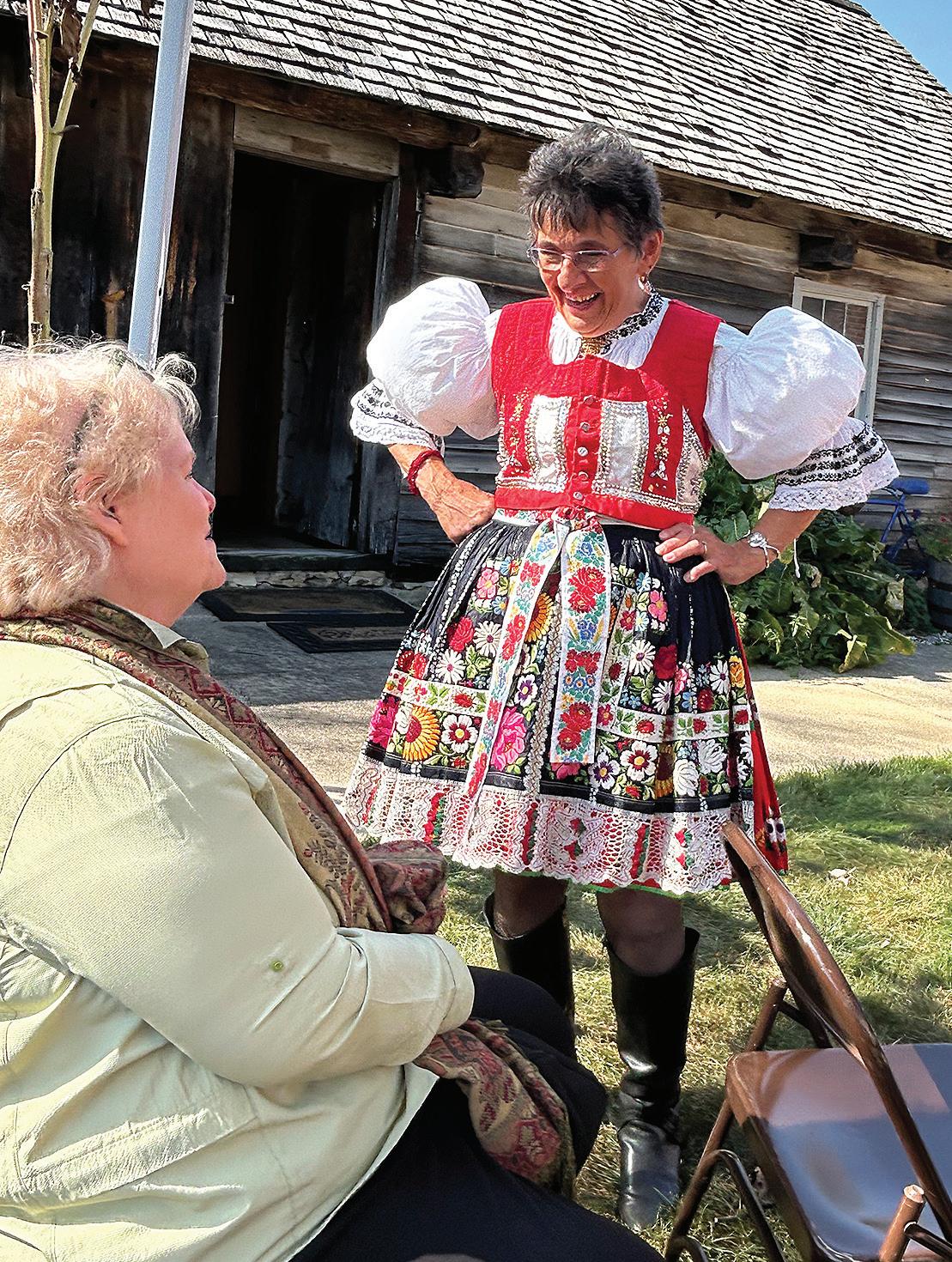 Rebecca Neuzil, 84-year-old Spillville local, chatted with attendees while wearing the traditional Moravian dancing costume she made for herself more than 20 years ago. Neuzil’s parents were full Czech, and she herself didn’t learn to speak English until she was in elementary school. (Decorah Leader photo by Denise Lana)
