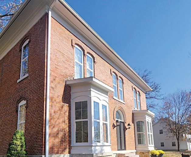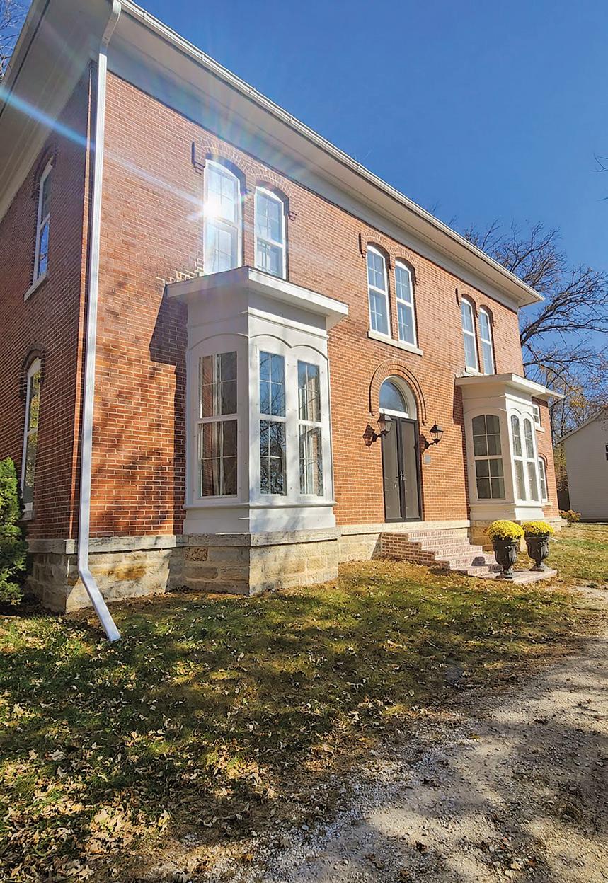The house was built on a stone foundation and boasts many crowning features from the Georgian period, with a grand staircase, 12-foot ceilings on both the main and upper levels, two chimneys, wide eves and arched 8-foot statement windows throughout the house. The restored home boasts four bedrooms upstairs and two full baths.