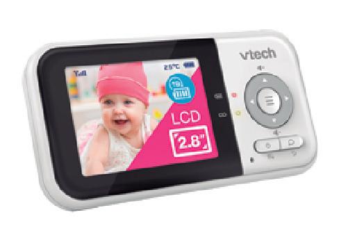 Pantalla LCD a color 2.8” y alta resolución. Indicador de sonido de 3 niveles. Vídeo de movimiento completo y visión nocturna infrarroja automática. Control de volumen.