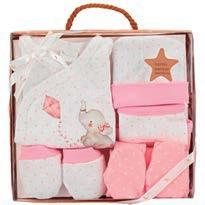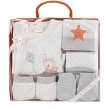 Set de nacimiento Ref. SET20/GRIS, SET20/ROSA. Incluye camiseta batista, polainas, babero, sombrero y manoplas. De 0 a 6 meses.