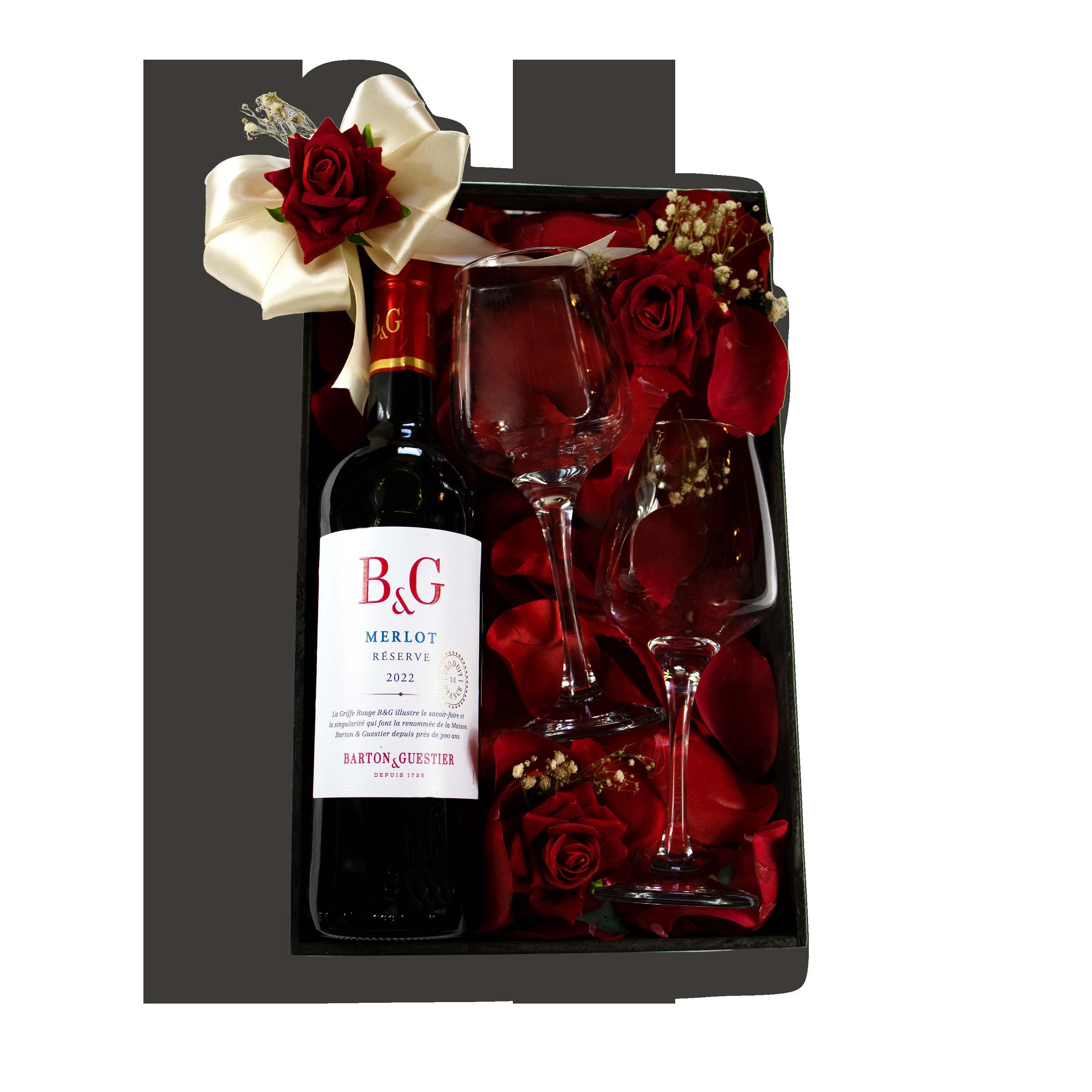 $31.29 -Vino B&G Merlot Reserve -2 Copas de Vino -Base Exlclusiva de Madera
