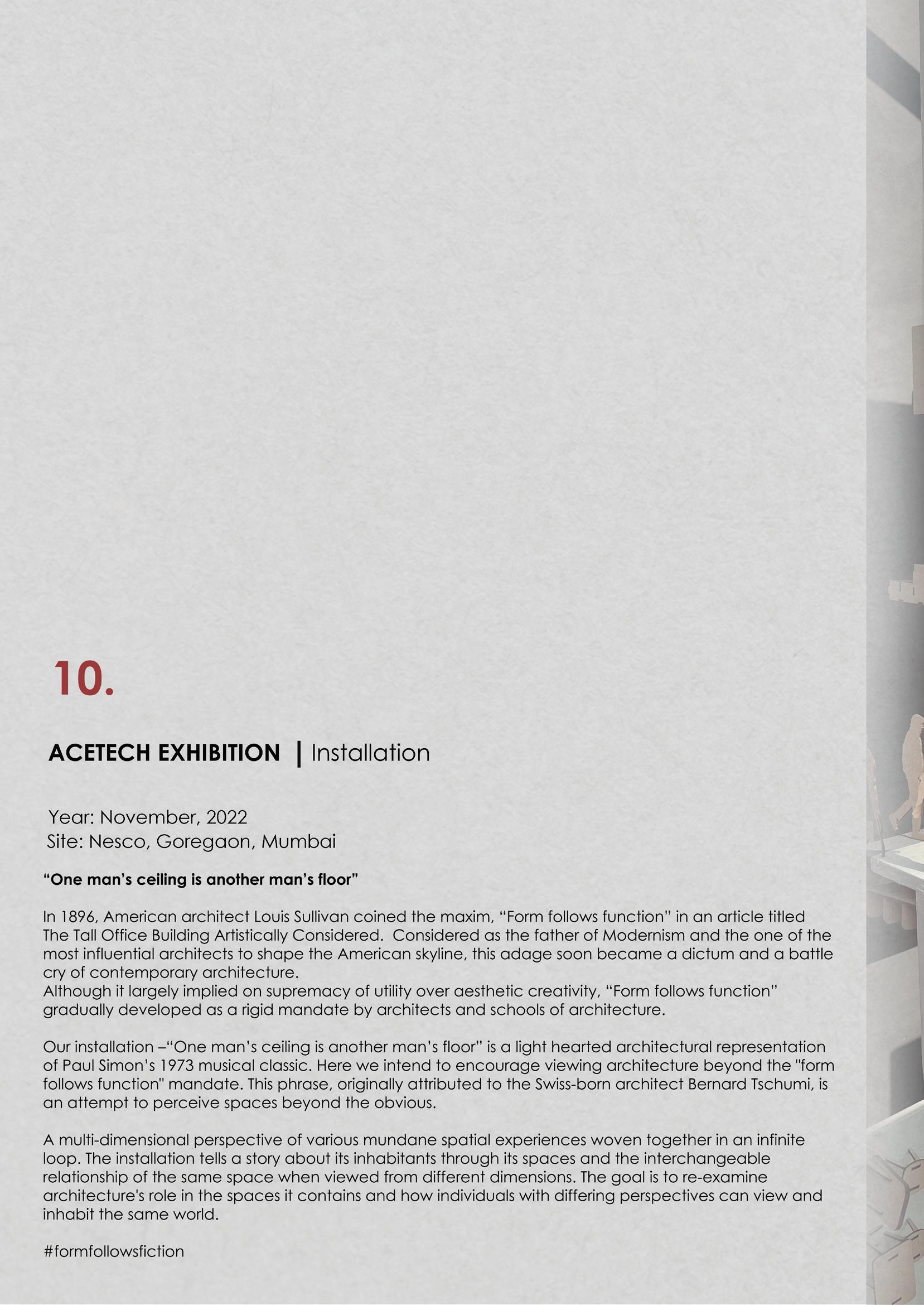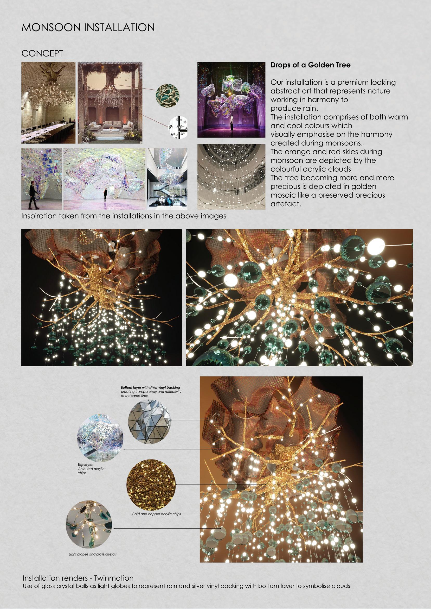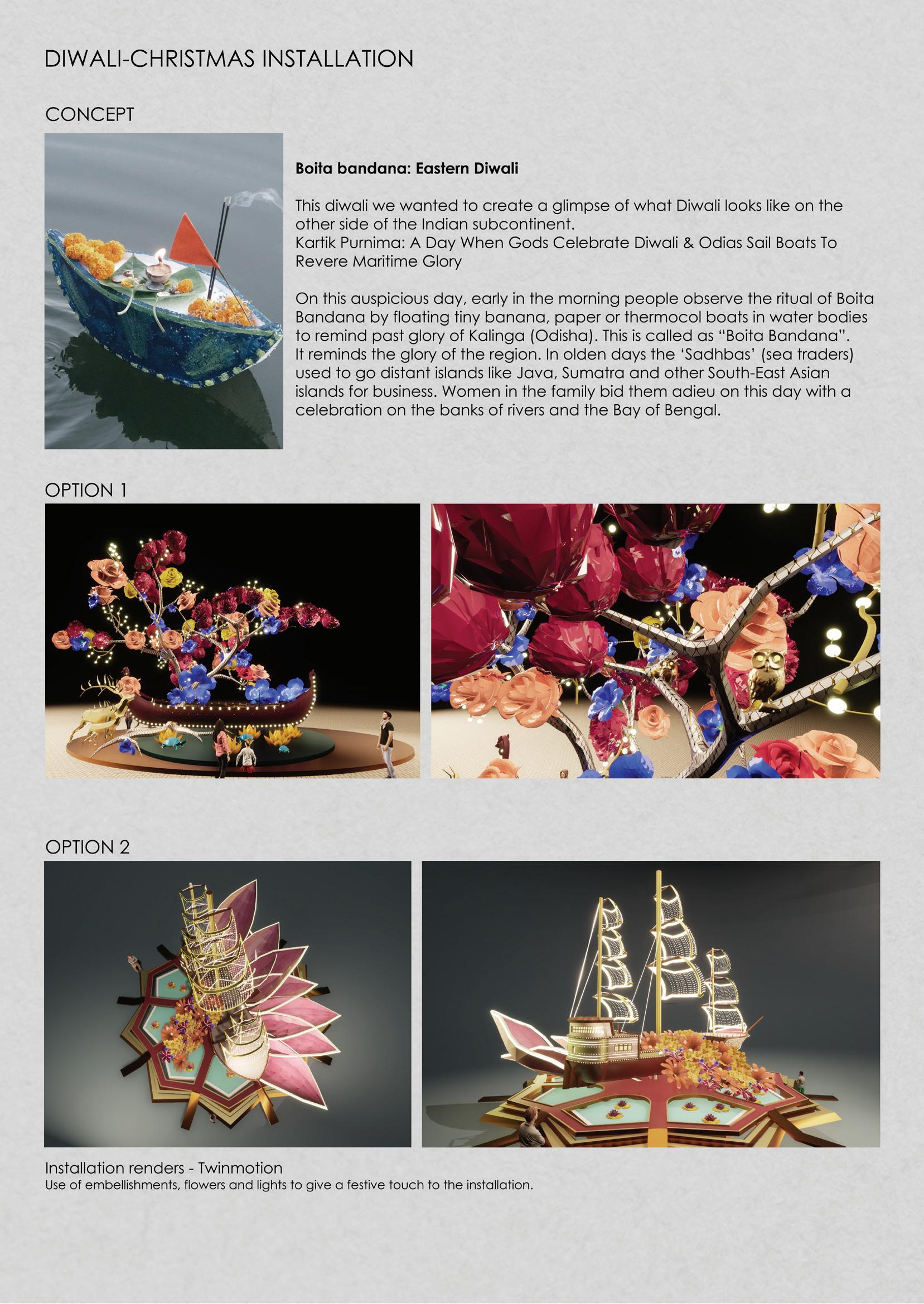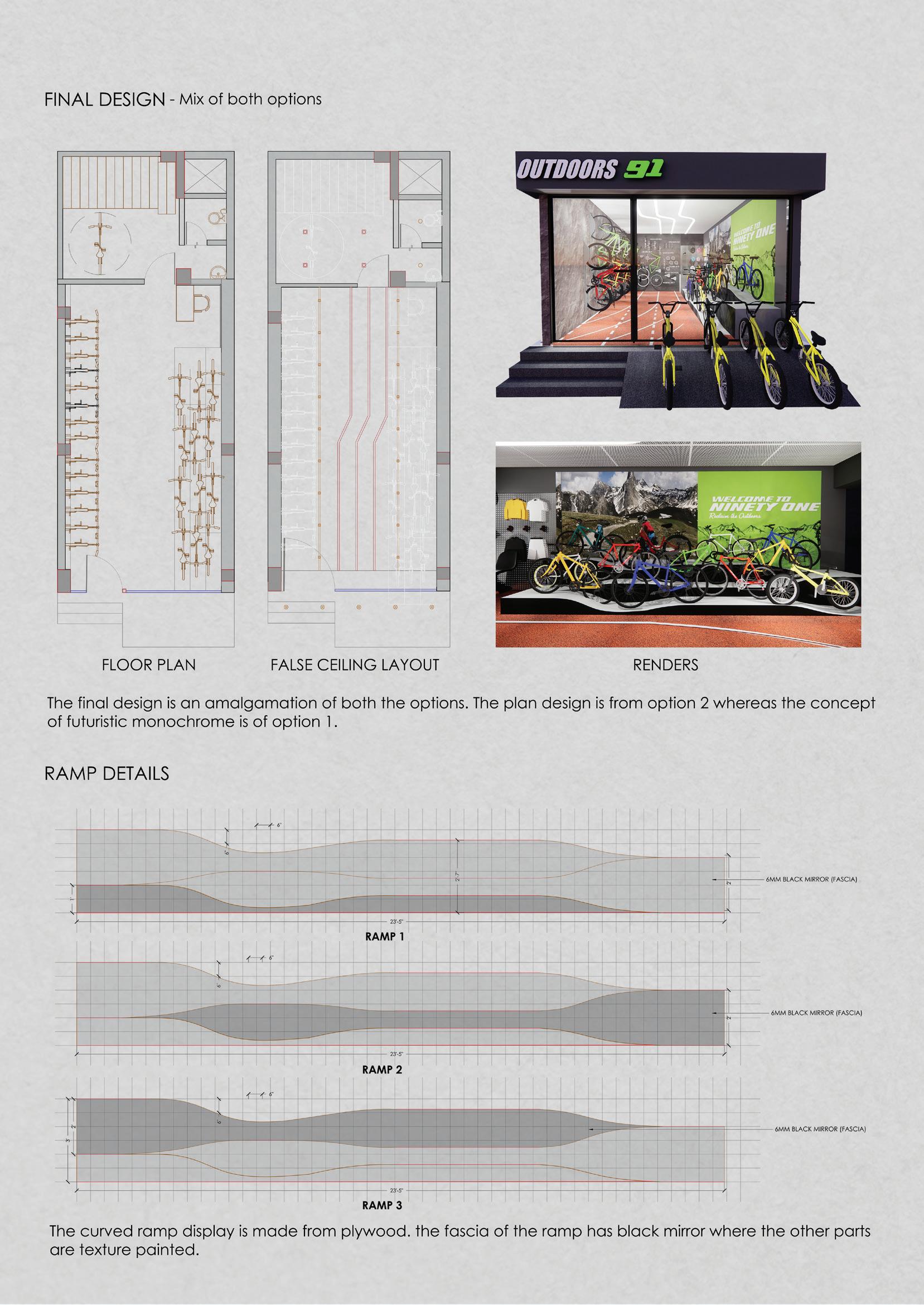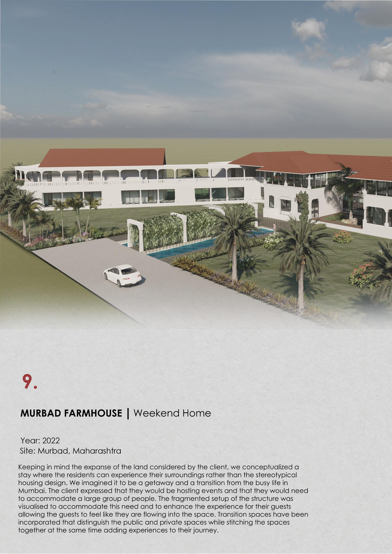 Feb - Sept 2022 - Studio TAB I Mumbai - Architectural and design intern Conceptualised, designed and executed a cycle showroom for Outdoors 91 Designed an experiential farmhouse in Murbad, modelled the structure and rendered it in Lumion. Prepared working drawings for Karjat bungalow. Conceptualised and designed an installation for Acetech Worked on concept, modelling and render of installations for malls
