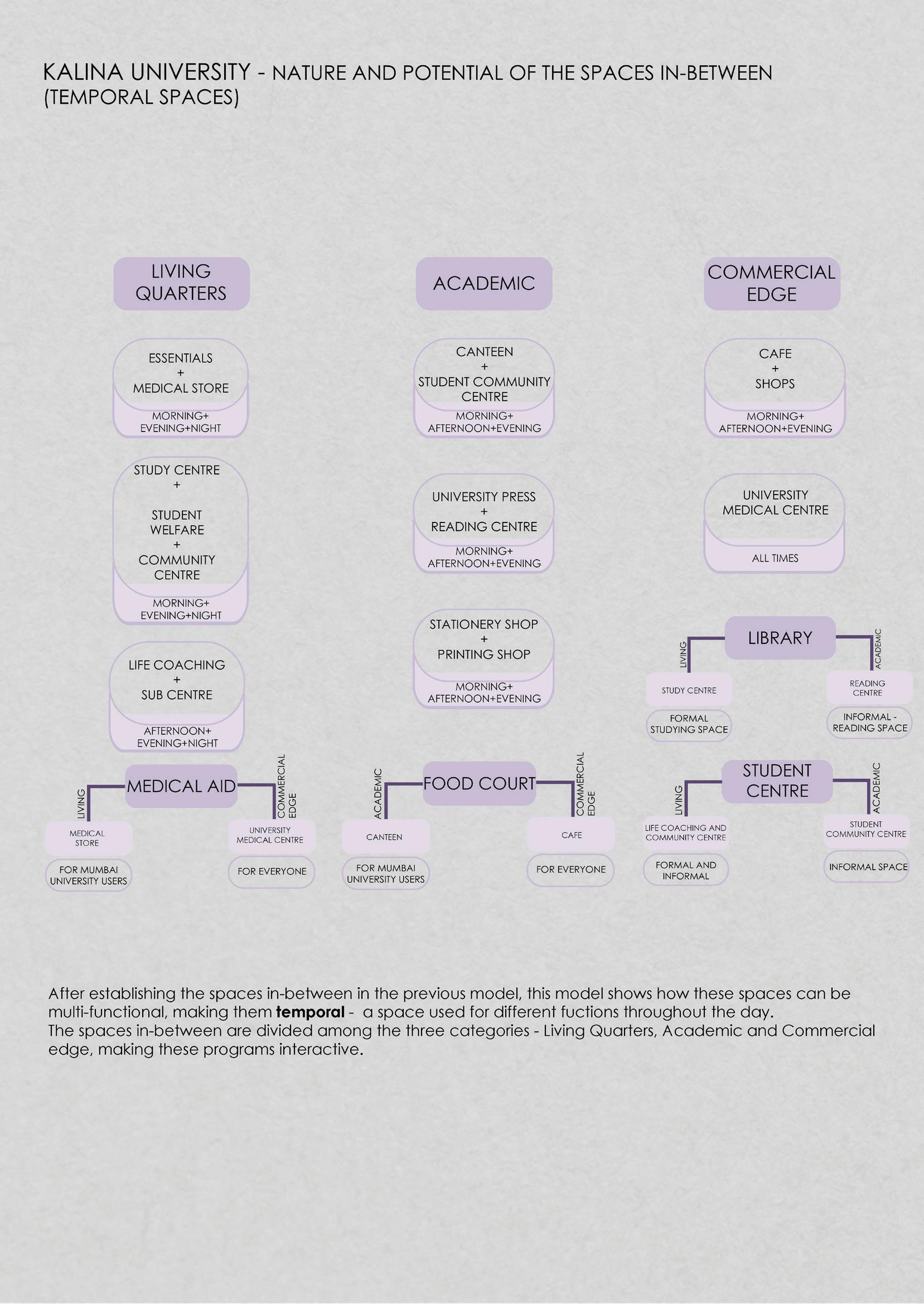 A mixed-use space depending on temporality and nature of public spaces created to be active at all times