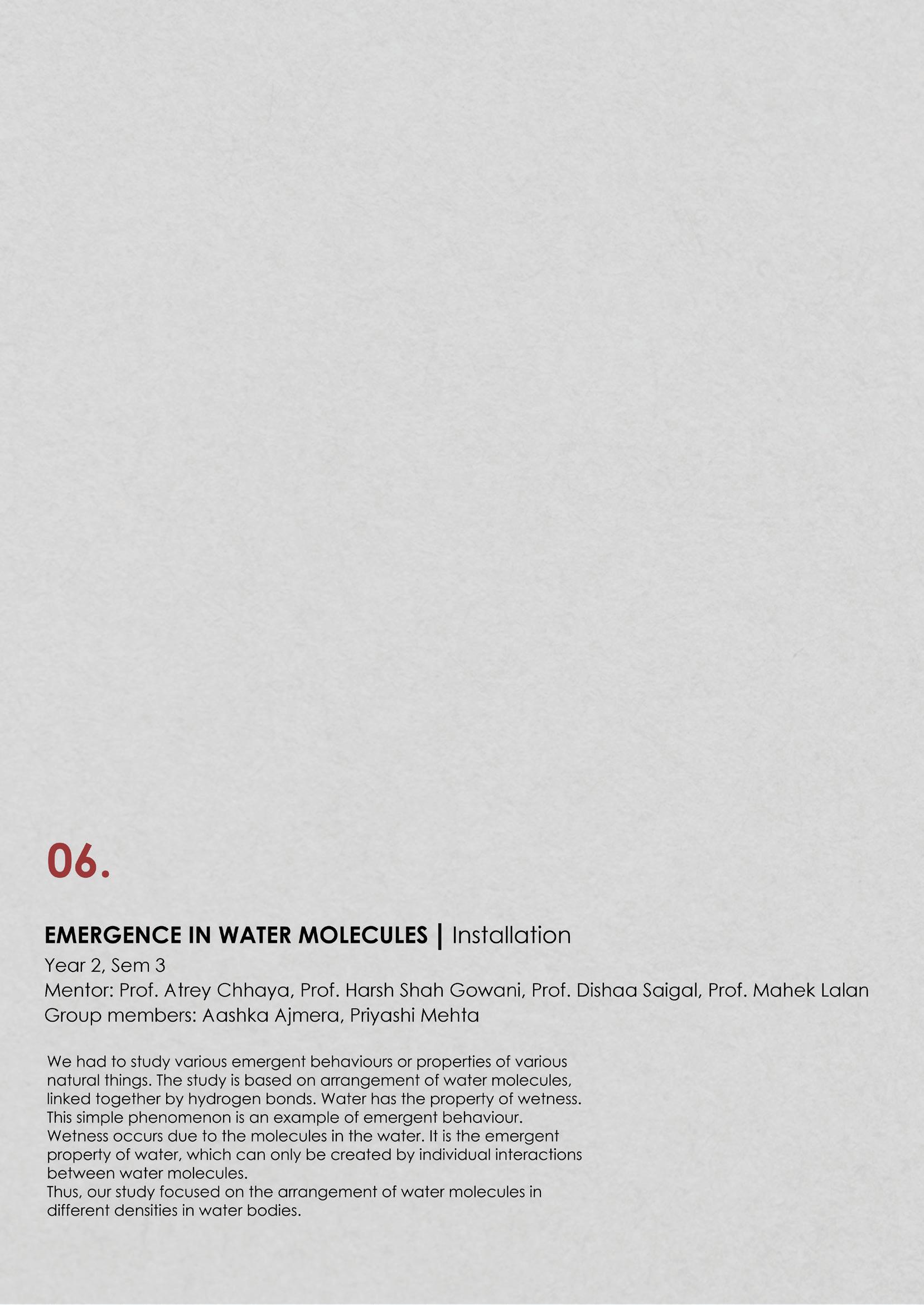 A study of emeregnce taking place in water molecules and wetness being an example of emergent behaviour