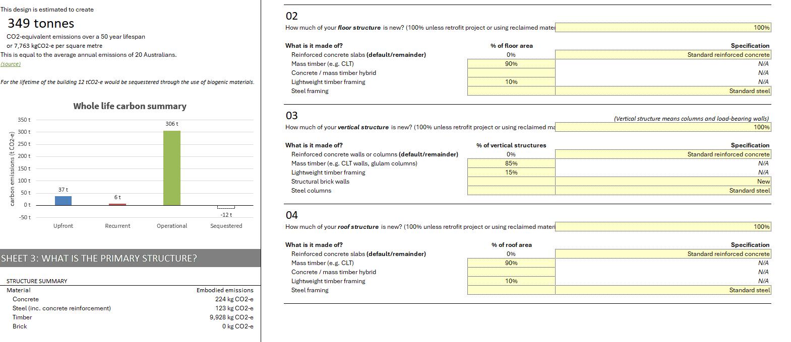 TIMBER CLADDING GHG Total : 850 kgCO2e STEEL Structure GHG Total 4000 kgCO2e TIMBER Structure GHG Total : kgCO2e GHG Total : kgCO2e GHG Total : 650 kgCO2e GHG Total : 550 kgCO2e STUD WALL+INSULATION