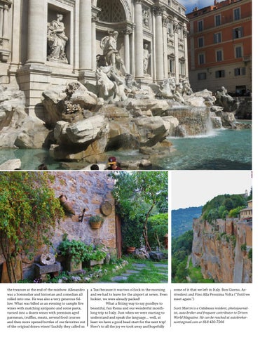 some of it that we left in Italy. Bon Giorno, Arrivederci and Fino Alla Prossima Volta (“Until we meet again.”) Scott Martin is a Calabasas resident, photojournalist, auto broker and frequent contributor to Driven World Magazine. He can be reached at autobrokerscott@gmail.com or 818 430-7266