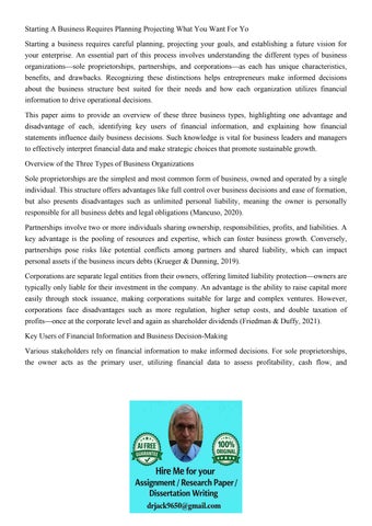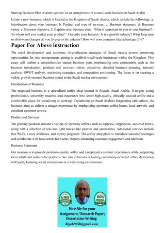 Start-up Business Plan Assume yourself as an entrepreneur of
