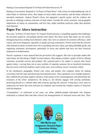 Starting a Conversation Respond To In Praise Of Chain Stores