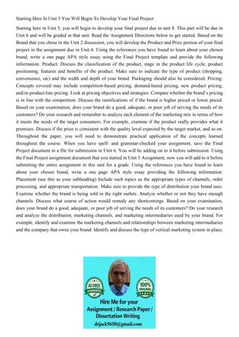 Starting Here In Unit 5 You Will Begin To Develop Your Final