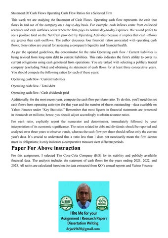 Statement Of Cash Flows Operating Cash Flow Ratios for a Sel