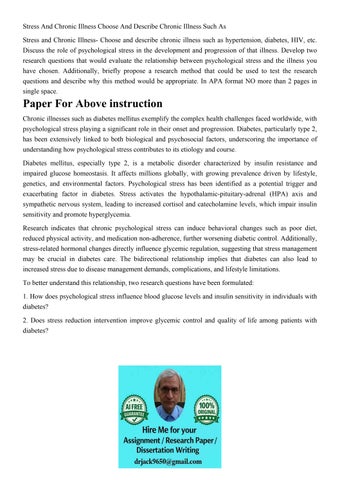 Stress And Chronic Illness Choose And Describe Chronic Illne