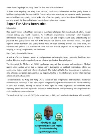 Stritas Team Ongoing Case Study From The Text Needs More Inf
