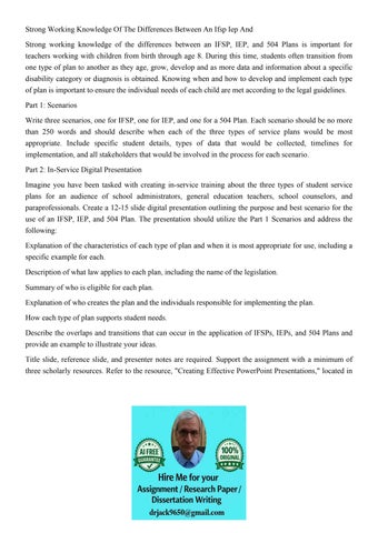 Strong Working Knowledge Of The Differences Between An Ifsp
