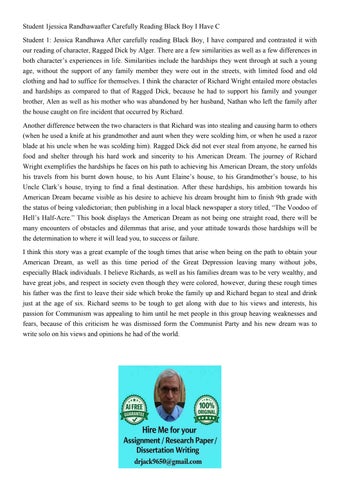 Student 1jessica Randhawaafter Carefully Reading Black Boy I