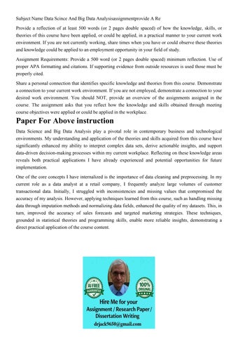 Subject Name Data Scince And Big Data Analysisassignmentprov