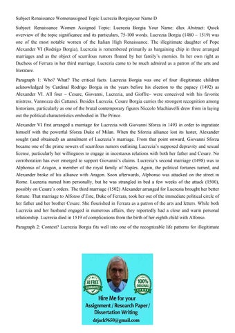 Subject Renaissance Womenassigned Topic Lucrezia Borgiayour
