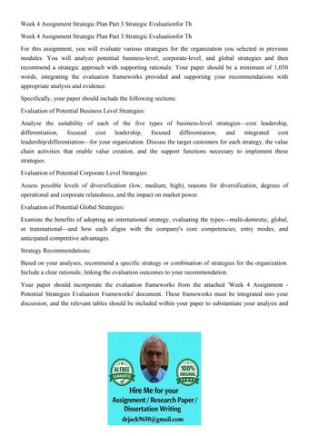 Week 4 Assignment Strategic Plan Part 3 Strategic Evaluation