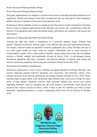 Week 4 Discussion Planning Database Design Week 4 Discussion