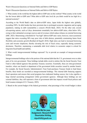 Week 4 Discussion Questions on National Debts and Debt to GD
