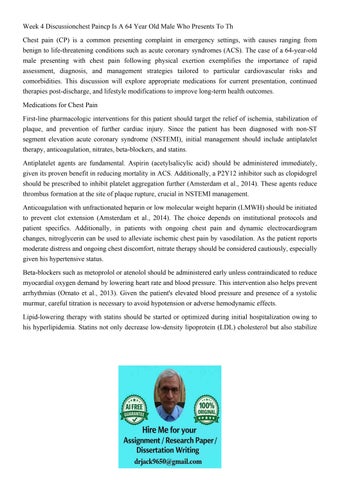 Week 4 Discussionchest Paincp Is A 64 Year Old Male Who Pres