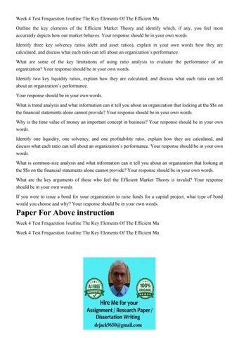 Week 4 Test Fmquestion 1outline The Key Elements Of The Effi