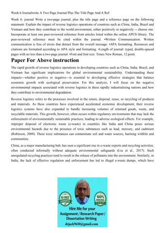 Week 6 Journalwrite A Two Page Journal Plus The Title Page A