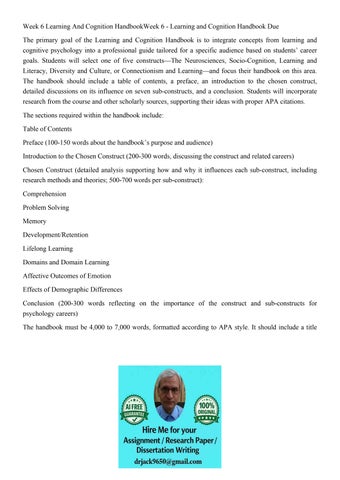 Week 6 Learning And Cognition HandbookWeek 6 - Learning and