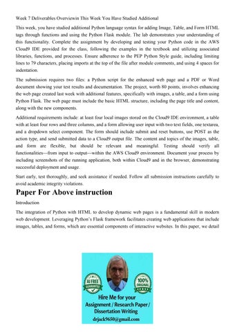 Week 7 Deliverables Overviewin This Week You Have Studied Ad