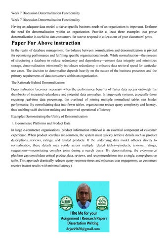 Week 7 Discussion Denormalization Functionality Week 7 Discu