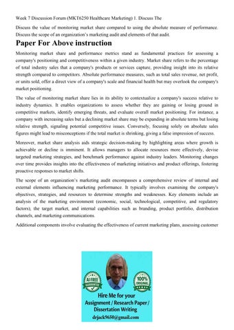 Week 7 Discussion Forum (MKT6250 Healthcare Marketing) 1. Di