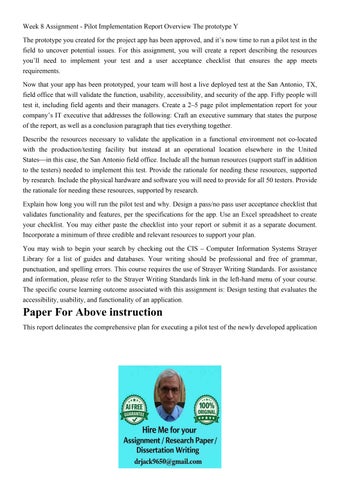 Week 8 Assignment - Pilot Implementation Report Overview The