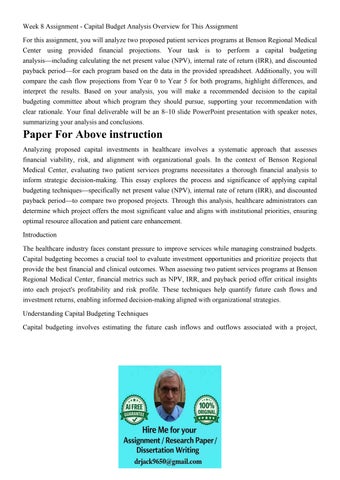 Week 8 Assignment - Capital Budget Analysis Overview for Thi