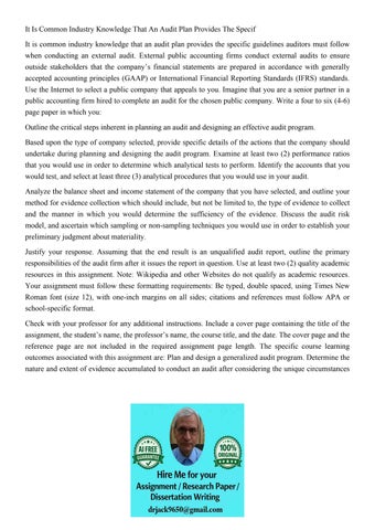 It Is Common Industry Knowledge That An Audit Plan Provides