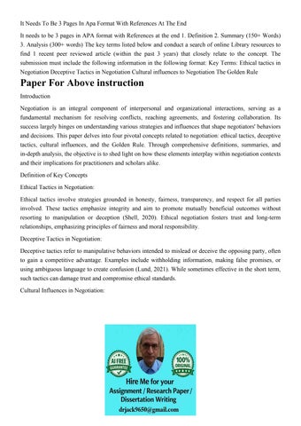 It Needs To Be 3 Pages In Apa Format With References At The