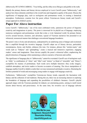 Jabberwocky BY LEWIS CARROLL ’Twas brillig, and the slithy t