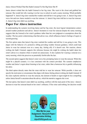Janice Almost Wished That She Hadnt Listened To Her Big Sist