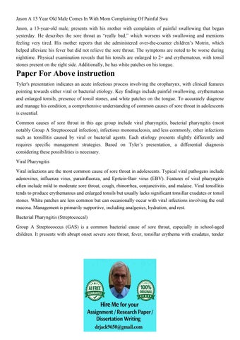 Jason A 13 Year Old Male Comes In With Mom Complaining Of Pa