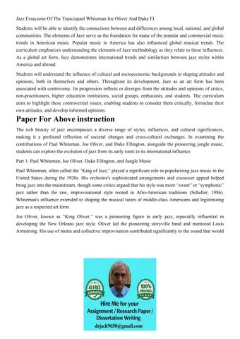 Jazz Essaysone Of The Topicispaul Whiteman Joe Oliver And Du