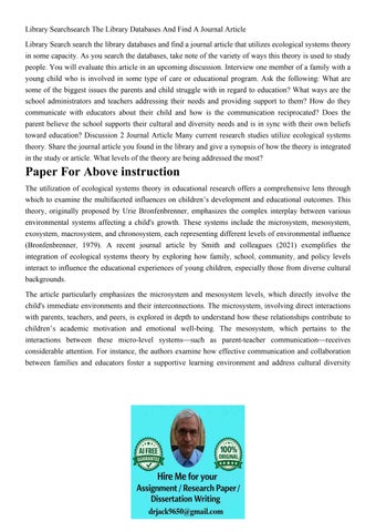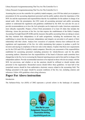 Library Research Assignmentassuming That You Are The Control
