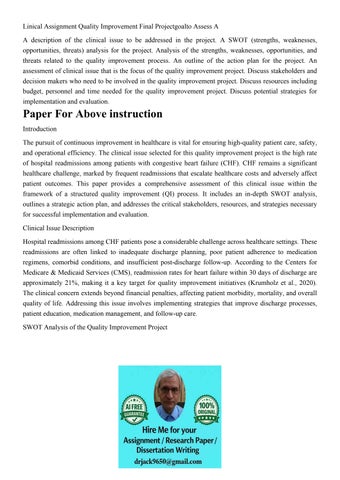 Linical Assignment Quality Improvement Final Projectgoalto A