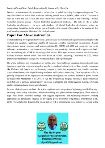 Locate A Current News Article Presentation Or Interview On G